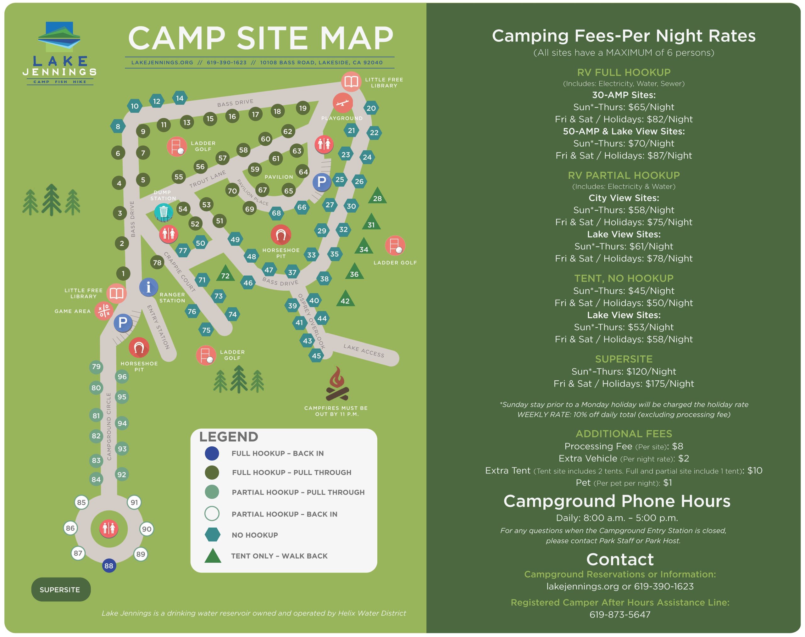 Campground Reservations, Day Use, & Shore Fishing: Daily 8 a.m. - 5 p.m.